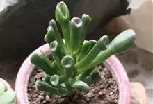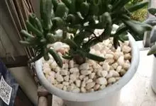 筒叶花月,是景天科青锁龙属的多年生草本植物。植株多分株,灌木状,茎较粗壮,圆柱形,表皮灰褐色;叶片肉质,互生,呈圆筒状,簇生于茎或分枝顶端,叶端呈斜截形,截面为椭圆形;花呈星状,淡白色;花期秋季。…全部>>