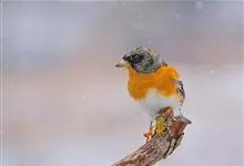 燕雀属小型鸟类,体长14-17厘米。嘴粗壮而尖,呈圆锥状。雄鸟从头至背辉黑色,背具黄褐色羽缘。腰白色,颏、喉、胸橙黄色,腹至尾下覆羽白色,两胁淡棕色而具黑色斑点。两翅和尾黑色,翅上具白斑。…全部>>