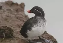 角嘴海雀,是海雀科、角嘴海雀属的中型海鸟,体长32-41厘米,嘴短而粗呈圆锥状、橙色。夏羽上嘴基部有一个三角形的突出物,形状如角。头两侧各有两条由白色丝状饰羽组成的纵带,分别位于眼上和眼下后方的头侧…全部>>
