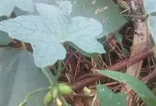 爪哇帽儿瓜,一年生攀援草本;茎、枝纤细,粗糙,被极短的糙硬毛。叶柄被糙硬毛,有棱沟,长4-6厘米,宽3-5 厘米,常3-5裂,中间的裂片较长,卵状三角形,先端渐尖,边缘具小齿,侧裂片较小,宽三角形…全部>>