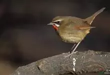 红点颏:是鸟纲、鹟科的鸣禽。又名西伯利亚歌鸲。体长14-17厘米,体重16-27克。雄鸟头部、上体主要为橄榄褐色。眉纹白色。颏部、喉部红色,周围有黑色狭纹。胸部灰色,腹部白色。雌鸟颏部、喉部不呈赤红色,…全部>>