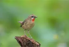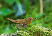 日本歌鸲:体型小似麻雀,但羽毛颜色较为美丽。嘴细长,嘴须不发达;翅短圆,上体草黄褐;雄鸟喉部橙棕色,十分明显,雌鸟却转为淡橙黄色。第一枚初级飞羽短狭;尾长约为跗蹠长度的二倍;跗蹠黑褐色,形粗长而健。…全部>>