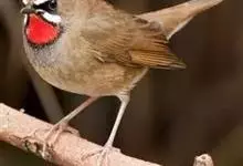红点颏:是鸟纲、鹟科的鸣禽。又名西伯利亚歌鸲。体长14-17厘米,体重16-27克。雄鸟头部、上体主要为橄榄褐色。眉纹白色。颏部、喉部红色,周围有黑色狭纹。胸部灰色,腹部白色。雌鸟颏部、喉部不呈赤红色,…全部>>