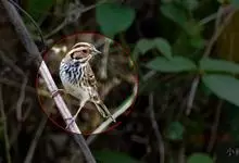 宝兴歌鸫,是鹟科、鸫属的鸟类。宝兴歌鸫为中型鸟类,体长20-24厘米。上体橄榄褐色,眉纹棕白色,耳羽淡皮黄色具黑色端斑,在耳区形成显著的黑色块斑。下体白色,密布圆形黑色斑点。宝兴歌鸫是中国的特有物种,…全部>>