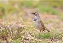 蓝点颏亦称“蓝喉歌鸲”,通称蓝靛颏儿。身体大小和麻雀相似,体长12-13厘米,体重17-18克。头部、上体主要为土褐色。眉纹白色。尾羽黑褐色,基部栗红色。颏部、喉部辉蓝色,下面有黑色横纹。下体白色。…全部>>