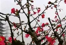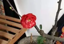 贴梗海棠Nakai)是蔷薇科、木瓜海棠属植物。落叶灌木,高达2米,枝条直立开展,有刺。叶片卵形至椭圆形,稀长椭圆形,长3-9厘米,宽1.5-5厘米。花先叶开放,3-5朵簇生于二年生老枝上。…全部>>