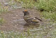 金额丝雀:为雀科丝雀属的鸟类。体重10-14克,体长109-131毫米。是一种体型较小的褐色斑驳的雀鸟。头近黑,额至顶冠有鲜红色块斑。雄雌同色,体羽在繁殖期更为亮丽。幼鸟似成鸟但头色较淡,…全部>>