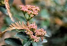 地中海荚蒾是五福花科,荚蒾属常绿灌木,树冠呈球形,冠径可达3米。叶片椭圆形,深绿色,聚伞花序,单花小,花蕾粉红色,盛开后花白色,果卵形,深蓝黑色,花期在原产地从11月直到翌存4月。…全部>>