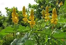 翅荚决明 Roxb.)是豆科决明属灌木植物,高3米。羽状复叶,在叶柄和叶轴上有窄翅;小叶倒卵状长圆形,先端圆钝,基部斜截形;总状花序顶生和腋生;荚果带形,…全部>>