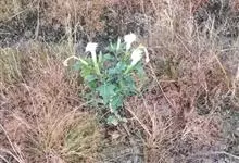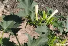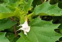 曼陀罗,茄科曼陀罗属一年生大型草本植物,全株光滑。有臭气;叶呈广卯形,边缘具不规则波状浅齿裂;花单生于枝杖间或叶腋,直立,有短梗;花萼是筒状裂片三角形,颜色为白色或淡紫色;果实为蒴果卵状,…全部>>