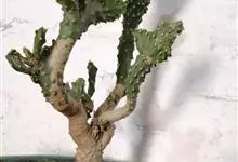 麒麟掌,是大戟科大戟属多年生植物。为金刚纂的带化变异变种。麒麟掌的株乳汁丰富;它的茎圆柱状,上部多分枝,绿色;叶互生,稀少,常生于嫩枝顶端脊上,倒卵形、倒卵状长圆形或匙形,顶端钝圆,具小凸尖,全缘,…全部>>
