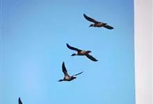 灰雁:体长70-90厘米,翼展147-182厘米,体重2.5-4千克,寿命17年。体大而肥胖。嘴、脚肉色,上体灰褐色,下体污白色,飞行时双翼拍打用力,振翅频率高。脖子较长。腿位于身体的中心支点,…全部>>