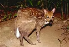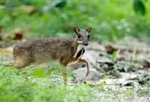 鼷鹿,别名小鼷鹿,共38个亚种。体形略比野兔大,体重1.3~2.0kg,体长420~630mm,肩高约200mm,是仅次于蹄兔目成员最小的有蹄类动物,也是鼷鹿科种体型最小的一种。面部尖长,无角,…全部>>