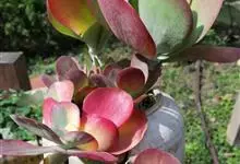 唐印为景天科伽蓝菜属的多年生肉质草本植物。植株中型,株高50厘米,宽20厘米,多分枝;叶片肉质,对生,卵形,全缘,先端钝圆,叶片淡绿色至灰绿色,表面被有厚厚的白粉,光照充足时,叶缘呈红色;圆锥花序,…全部>>