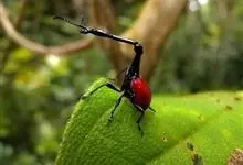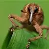 竹象鼻虫,Cyrtotrachelus longimanus,象甲科锥大象甲属的一种昆虫。分布于竹产区,是竹类的主要害虫。以幼虫蛀食竹笋,使笋枯死,还会蛀食1米多高的嫩竹,使其生长不良,节间缩短,…全部>>