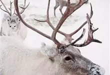 驯鹿又名角鹿。是鹿科、驯鹿属下的唯一一种动物。体长100~125厘米,肩高100-120厘米。雌雄皆有角,角的分枝繁复是其外观上的重要特征。长角分枝繁复,有时超过30叉,蹄子宽大,悬蹄发达,尾巴极短。…全部>>