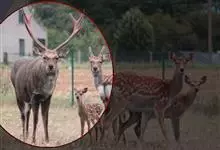 麋鹿是鹿科、麋鹿属唯一的鹿类动物。因为它头脸狭长像马、角像鹿又与其它鹿略有不同、蹄子宽大像牛、尾细长像驴,因此又名四不像。它的角形独特,形状与其它鹿的犄角正好相反,前杈再分小杈,而后杈几乎不分叉。头大,…全部>>
