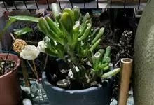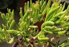 筒叶花月,是景天科青锁龙属的多年生草本植物。植株多分株,灌木状,茎较粗壮,圆柱形,表皮灰褐色;叶片肉质,互生,呈圆筒状,簇生于茎或分枝顶端,叶端呈斜截形,截面为椭圆形;花呈星状,淡白色;花期秋季。…全部>>
