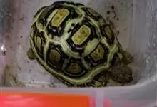 豹纹陆龟是陆龟科、豹龟属爬行动物。背甲高隆,椭圆形,黑色或淡黄色;背甲每块盾片上具黄白色或黑色环斑,套在一起,似豹纹;腹甲淡黄色,后缘具缺刻;头颈部黄棕色,无斑,前额鳞1-2枚,…全部>>