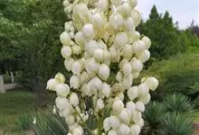 丝兰是天门冬科丝兰属植物。茎短或无茎;圆锥花序烛台状,花朵杯形,下垂,白色;叶基部呈剑形放射状,被白粉,革质;花期8—10月。丝兰原产于北美,在中国长江流域一带和华北地区均有栽培,长江以南地区也有分布。…全部>>
