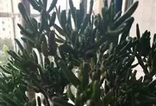 筒叶花月,是景天科青锁龙属的多年生草本植物。植株多分株,灌木状,茎较粗壮,圆柱形,表皮灰褐色;叶片肉质,互生,呈圆筒状,簇生于茎或分枝顶端,叶端呈斜截形,截面为椭圆形;花呈星状,淡白色;花期秋季。…全部>>