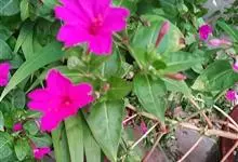 即紫茉莉,英文名:Four-o'clock,Marvel of Peru,为紫茉莉科、紫茉莉属多年生草本植物,一年生栽培。株高50~80cm。根粗壮,茎多分枝而散生。叶对生,卵形或心脏形。花数朵簇生…全部>>
