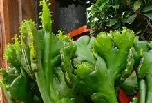 麒麟掌,是大戟科大戟属多年生植物。为金刚纂的带化变异变种。麒麟掌的株乳汁丰富;它的茎圆柱状,上部多分枝,绿色;叶互生,稀少,常生于嫩枝顶端脊上,倒卵形、倒卵状长圆形或匙形,顶端钝圆,具小凸尖,全缘,…全部>>