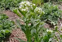 乌塌菜是十字花科芸苔属草本植物。乌塌菜的基生叶密生成莲座状,圆卵形或倒卵形,厚而皱缩,深绿色;上部叶近圆形或圆卵形,全缘,抱茎。花呈淡黄色,长角果呈圆柱形,种子呈圆球形,深褐色。花期3—4月,果期5月。…全部>>