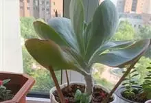 唐印为景天科伽蓝菜属的多年生肉质草本植物。植株中型,株高50厘米,宽20厘米,多分枝;叶片肉质,对生,卵形,全缘,先端钝圆,叶片淡绿色至灰绿色,表面被有厚厚的白粉,光照充足时,叶缘呈红色;圆锥花序,…全部>>