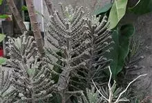 棒叶落地生根是景天科、落地生根属植物。茎直立、粉褐色。叶圆棒形,上表面有沟、粉色,有红褐斑。叶片交互对生,交叉排列成十字形。叶端锯齿上长有很小的幼株、落地后即可生根成活。原产非洲马达加斯加。…全部>>
