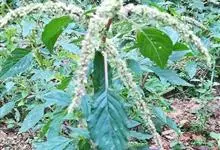 反枝苋是苋科苋属的一年生草本植物。株高达1米;茎密被柔毛;叶菱状卵形或椭圆状卵形,先端锐尖或尖凹,两面及边缘被柔毛,下面毛较密;穗状圆锥花序,顶生花穗较侧生者长;花被片长圆形或长圆状倒卵形,…全部>>
