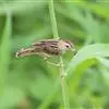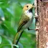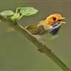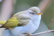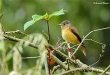 棕脸鹟莺:体长10厘米,是一种色彩亮丽而有特色的莺鸟。头栗色,具黑色侧冠纹。上体绿,腰黄色。下体白,颏及喉杂黑色点斑,上胸沾黄。与栗头鹟莺的区别在头侧栗色,白色眼圈不显著且无翼斑。…全部>>