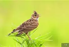云雀,是雀形目百灵科云雀属鸟类。云雀上体大都砂棕色,各羽纵贯以宽阔的黑褐色轴纹;上背和尾上覆羽的黑褐纵纹较细,棕色因而较显著;后头羽毛稍有延长,略成羽冠状;两翅覆羽黑褐,…全部>>