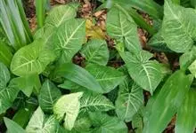 合果芋是天南星科,合果芋属多年生常绿草本植物,合果芋的茎节具气生根,攀附他物生长。叶片呈两型性,箭形或戟形;叶基裂片两侧常着生小型耳状叶片。佛焰苞浅绿或黄色。合果芋一般不易开花。…全部>>