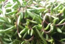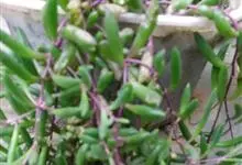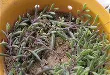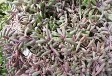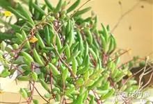 紫玄月是菊科厚敦菊属多年生肉质草本植物。蔓长30-60厘米;茎紫色;叶对生或互生茎上肉质,叶片细圆柱形,中间粗两端细稍弯曲;花序着生于叶腋,头状花序,舌状花黄色,管状花黄色;花期全年。…全部>>