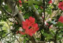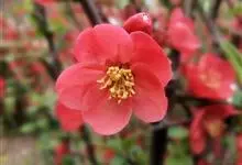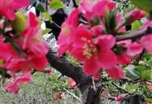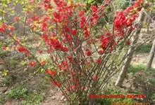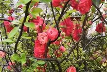 贴梗海棠Nakai)是蔷薇科、木瓜海棠属植物。落叶灌木,高达2米,枝条直立开展,有刺。叶片卵形至椭圆形,稀长椭圆形,长3-9厘米,宽1.5-5厘米。花先叶开放,3-5朵簇生于二年生老枝上。…全部>>