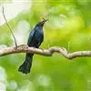 发冠卷尾是中型鸟类,体长28-35厘米。通体绒黑色缀蓝绿色金属光泽,额部具发丝状羽冠,外侧尾羽末端向上卷曲。栖息于海拔1500米以下的低山丘陵和山脚沟谷地带,多在常绿阔叶林、次生林或人工松林中活动。…全部>>