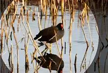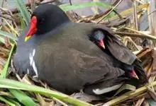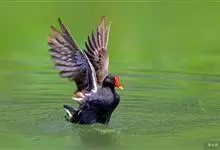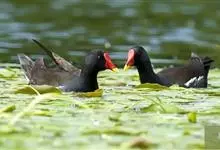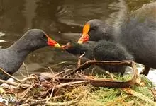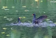 黑水鸡:是鹤形目、秧鸡科的鸟类,共有12个亚种。中型涉禽,体长24-35厘米。嘴长度适中,鼻孔狭长;头具额甲,后缘圆钝;嘴和额甲色彩鲜艳。翅圆形,第2枚初级飞羽最长,或第2枚和第3枚初级飞羽等长,…全部>>