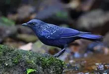 紫啸鸫是雀形目鹟科啸鸫属鸟类,又称黑雀儿,山鸣鸡、乌精。成鸟眼先及颏绒黑色;前额、头顶至背及肩羽和颈侧呈深紫蓝色,羽端具较密集的亮蓝色点斑;腰至尾上覆羽的深紫蓝色较暗而杂黑褐色,…全部>>