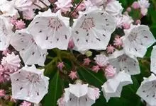 山月桂,亦称阔叶山月桂、美洲月桂、美国石南。杜鹃花科山月桂属的常绿灌木,学名Kalmia latifolia,产于北美洲东部的大多数山区。叶互生、革质、椭圆形至长椭圆形,表面暗绿色,背面黄绿色,…全部>>