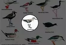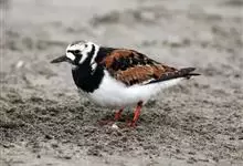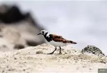 翻石鹬:体重82-135克,体长180-240毫米。体型高矮兼称,看起来十分的滑稽。它们在繁殖季时体色非常醒目,由栗色、白色和黑色交杂而成,嘴短,黑色,脚橙红色。到了冬天,翻石鹬身上的栗红色就会消失,…全部>>