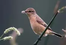 黑喉石鵖,雀形目鹟科石鵖属小型鸣禽,俗名谷尾鸟、黑喉石。其体色为黑褐色。雄鸟头部、背部、两翼及尾黑色,颈侧及翼上具白斑,胸部和腹侧红棕色,腰及尾下覆羽白色。雌鸟体色为褐色,上体具深色纵纹,胸部染棕色,…全部>>