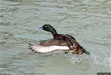 凤头潜鸭又名泽凫、凤头鸭,是雁形目鸭科潜鸭属中型潜水鸭。其体长约40厘米;雌雄均有长的辫状冠羽,嘴宽大,眼黄色;雄鸟全体黑色,但腹部、两胁和翼镜为白色;雌鸟全体大致为褐色,两胁有褐色斑纹,腹部白色。…全部>>