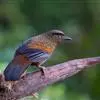 蓝翅噪鹛:噪鹛科、彩翼噪鹛属动物。中型鸟类,体长22-25厘米。上体棕橄榄褐色密被黑色鳞状斑,眼蓝白色,眼上有一长而宽阔的黑色眉纹,从眼先直到颈侧。下体棕褐色被黑色鳞状斑;尾上和尾上覆羽栗色,…全部>>