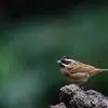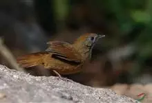 白腹幽鹛,是画眉科幽鹛属鸟类,共有4亚种。雕雄羽色相似。 上体从头到尾包括两题表面概为微椎褐色,两翅和尾沾更多红色。眼先和颚上灰褐色,耳覆羽褐色具族色羽轴纹,颈与背同色。额、喉白色具矢状黑斑,…全部>>