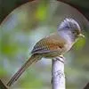 栗额斑翅鹛是噪眉科、斑翅鹛属中型鸟类,体长20-23厘米。头顶具浓密的羽冠,前额栗棕色,头顶灰褐色。上体棕褐色,两翅棕褐色具黑色横斑,翅基外缘有一黑斑,尾呈凸状,棕褐色具黑色横斑。下体棕褐色,…全部>>