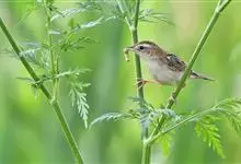 金头扇尾莺体小而具褐色纵纹的莺。嘴细长,略向下弯;翼短,体型娇小,尾长。下体皮黄,喉近白,尾深褐,尾端皮黄。雌雄羽色相近,羽色单调。繁殖期雄鸟顶冠亮金色,腰褐色。雌鸟及非繁殖期雄鸟头顶密布黑色细纹,…全部>>