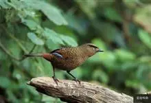 蓝翅噪鹛:噪鹛科、彩翼噪鹛属动物。中型鸟类,体长22-25厘米。上体棕橄榄褐色密被黑色鳞状斑,眼蓝白色,眼上有一长而宽阔的黑色眉纹,从眼先直到颈侧。下体棕褐色被黑色鳞状斑;尾上和尾上覆羽栗色,…全部>>