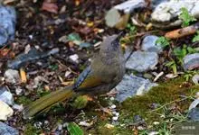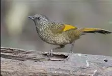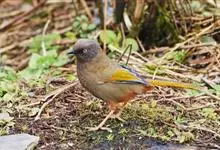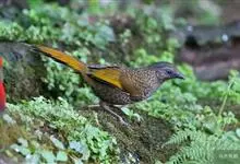 橙翅噪鹛:是噪鹛科、彩翼噪鹛属的中型鸟类,体长22-25厘米。头顶深葡萄灰色或沙褐色。上体灰橄榄褐色,外侧飞羽外翈蓝灰色、基部橙黄色,中央尾羽灰褐色,外侧尾羽外翈绿色而缘以橙黄色并具白色端斑。…全部>>