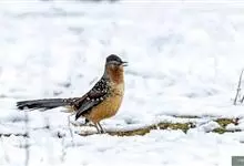 大噪鹛:中型鸟类,体长32-36厘米。额至头顶黑褐色,背栗褐色满杂以白色斑点,斑点前缘或四周还围有黑色。初级覆羽、大覆羽和初级飞羽具白色端斑。尾特长,均具黑色亚端斑和白色端斑。颏、喉棕褐色,…全部>>